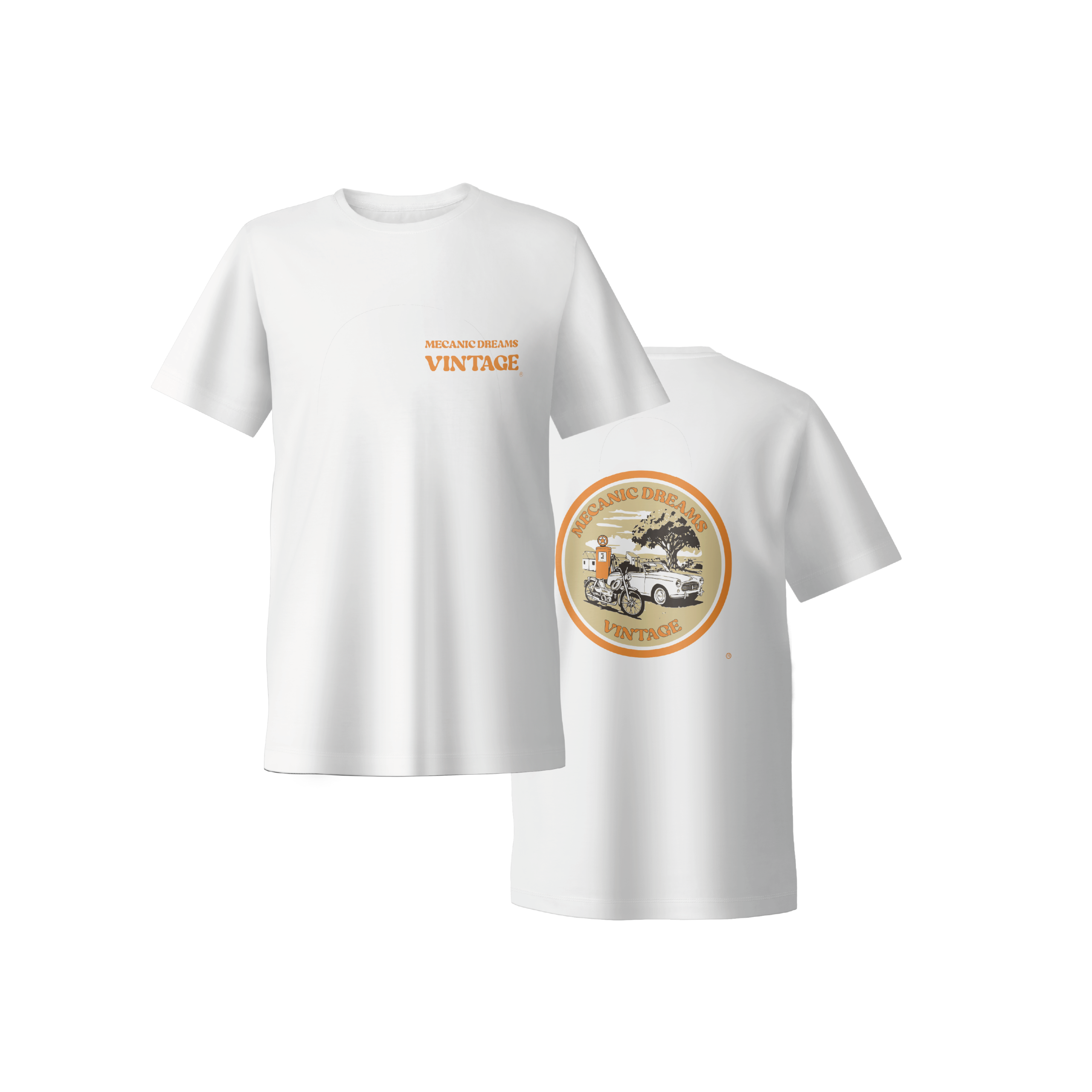 Vous pouvez choisir d’avoir le logo au devant du T-shirt ou bien derrière avec sur le devant les écritures « Mecanic Dreams Vintage » sur le coeur.